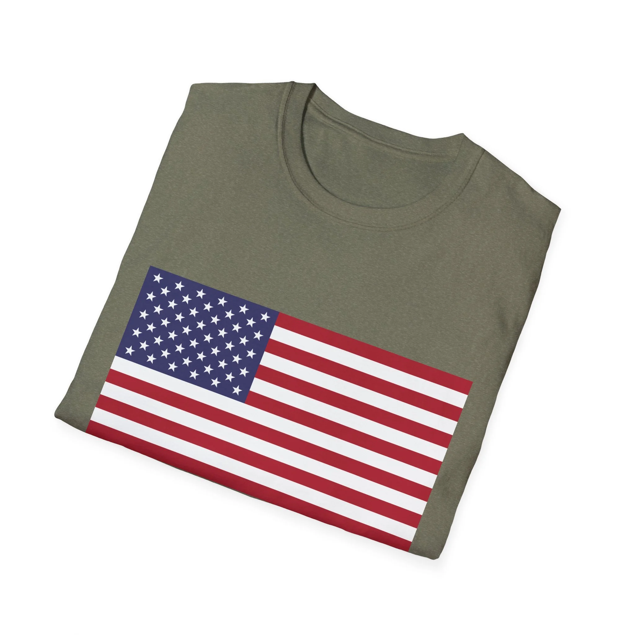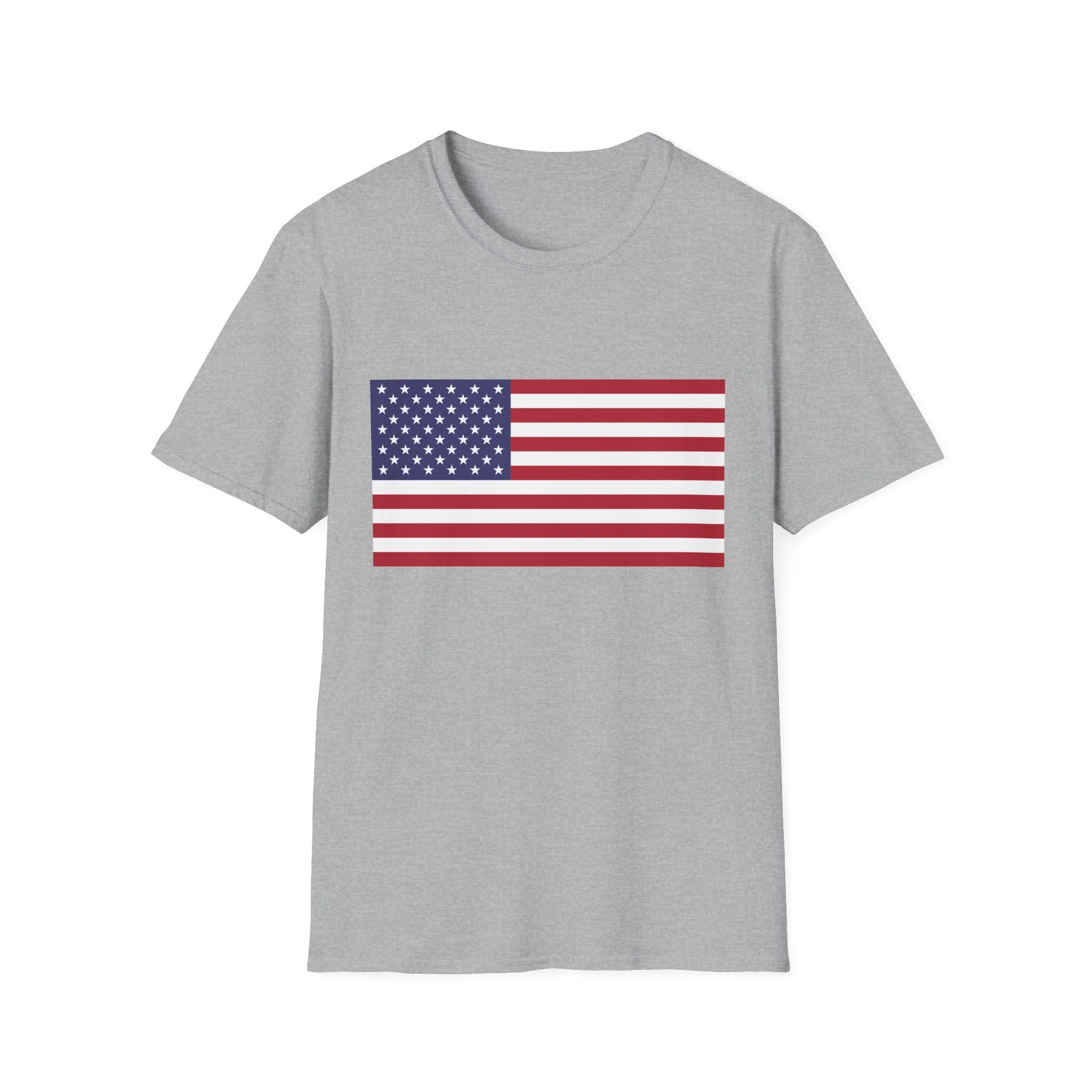 Show your American pride in comfort and style with this custom American flag T-shirt. Designed with a modern unisex fit and an ultra-soft feel, this tee is perfect for celebrating freedom, honoring tradition, and representing the red, white, and blue wherever you go. Solid colors are made from 100% ring-spun cotton, while heather and sport grey blends offer added durability. Reinforced shoulders, a smooth side-seam-free design, and a ribbed-knit collar provide a comfortable fit that holds its shape wear after wear. Whether you are wearing it for the Fourth of July, Memorial Day, Veterans Day, parades, barbecues, or everyday patriotic expression, this shirt is a timeless way to celebrate the American spirit.